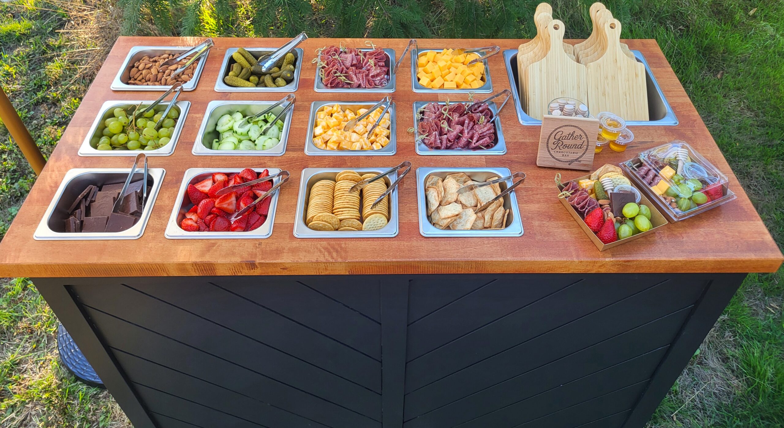 Planning your next event? Book our mobile charcuterie bar and give your guests a unique and custom experience that will give them a reason to “Gather ‘Round!”